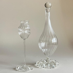 Inspired by different nymph myths and in the continuity of pieces honoring femininity, the Calypso Carafe is an artisanal piece of hand-blown glass. It is a poetic piece offering sensitivity and elegance.