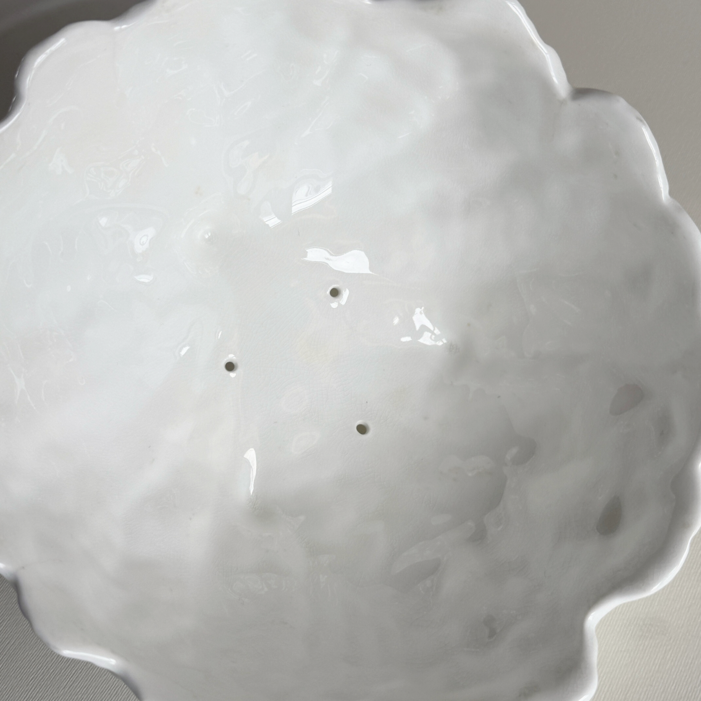 Esalta la tua tavola con questa raffinata fruttiera Wedgwood Coalport Countryware, realizzata in squisita porcellana. Il suo motivo a foglia di cavolo scolpito e la sobria finitura bianca offrono un'aggiunta senza tempo alle collezioni di stoviglie di lusso. Con dimensioni di 20 cm Ø × 9 cm H (7,9" Ø × 3,5" H) e un peso di 700 g (1,54 libbre), questo pezzo di design per la tavola bilancia eleganza funzionale e raffinatezza decorativa, perfetto per presentare frutta, dessert o come centrotavola di grande effetto.