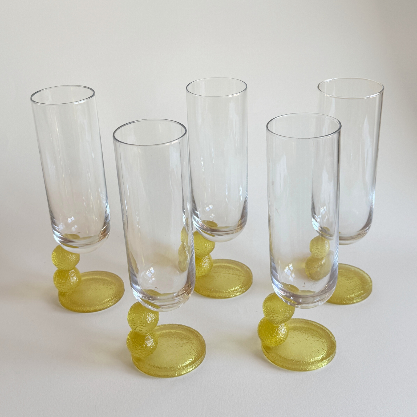 Whether for serving sparkling wines at a special gathering or displayed as part of a curated vintage glassware collection, this set is a must-have for collectors of 1970s Italian design. Its rarity, pristine condition, and association with Joe Colombo make it an exceptional find.